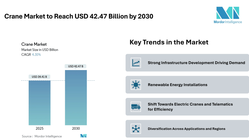 Crane Market to Reach USD 42.47 Billion by 2030, Fueled by Infrastructure Push and Renewable Energy Demand – Mordor Intelligence